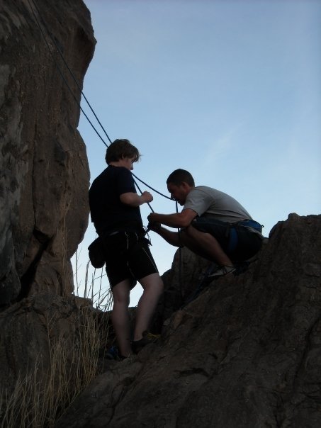 “Mike really impressed me this day. On his first climb, he said it would be his last due to his fear of heights. But before I knew it, he was down on the ground and then strapped in on the other side for another climb! Go Mike! Zack was also really impressive. He got off to a slow start, but was consistently making it to the tops of his climbs. The second day he really came through. We had set a top rope on this face with tiny little holds. I belayed Zack on his climb and he just plugged away until he reached the top with no problems.”
