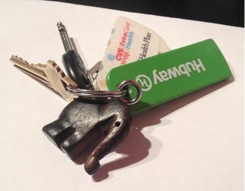 It’s actually a simple item and one of the most inexpensive purchases I’ve made outside of a penny candy store. It’s a small wooden elephant, less than two inches in height. He hangs on a ring in between my house key and Hubway pass.