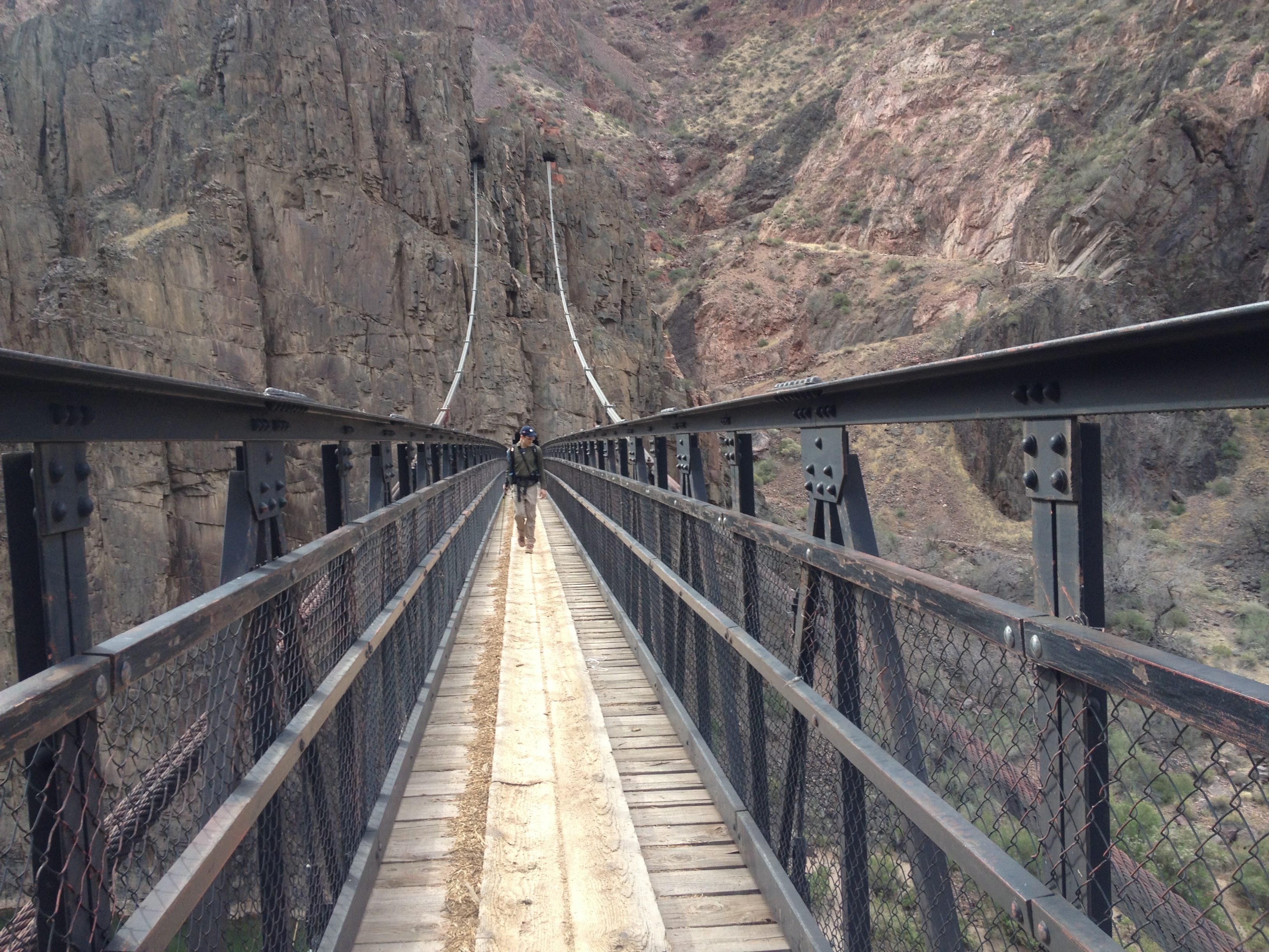 We began ascending the Bright Angel trail, a 9.5 mile hike back up to the South Rim. Walking along the Colorado, we waved to a group of white water rafters who were about at the halfway point of their 16-day float. They were to our right, about 60 feet below.