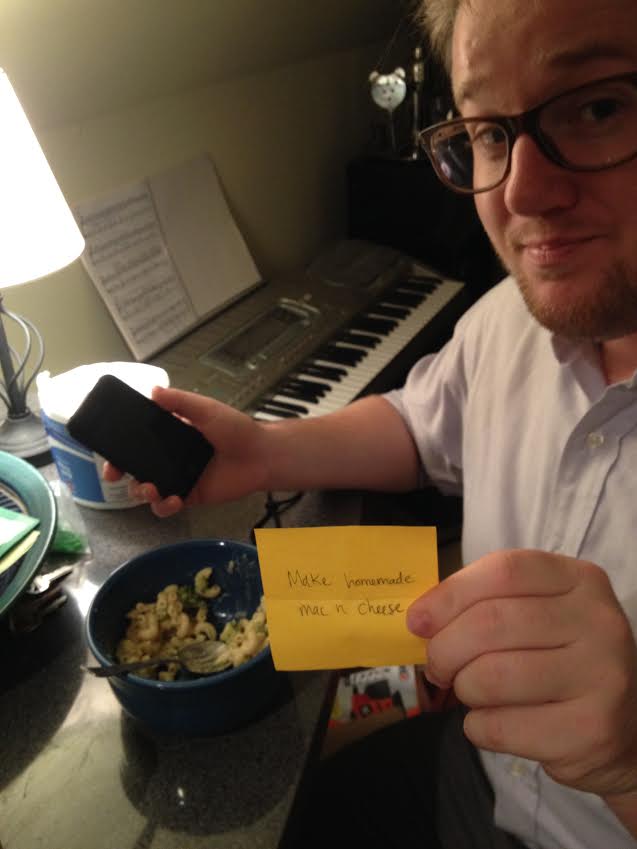 Mac and Cheese is one of Mary’s favorite foods. Zack (our best man) lived with us for a week, so we put him to work.